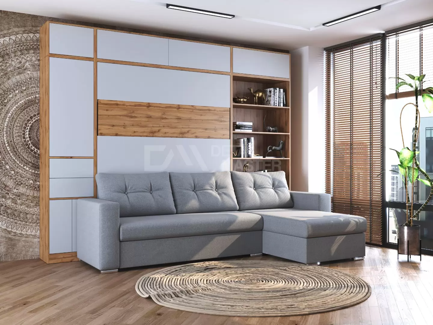 Шкаф-кровать трансформер с диваном "Big Family Balance"работает на механизме раскладывания собственной разработки "Balance". Кровать раскладывается легким движением руки, превращаясь в полноценное спальное место. Просто потяните за ножку-маятник, которая самостоятельно фиксируется в нужное положение при опускании.