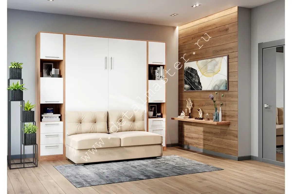 Дополнительные опции, такие как: освещение, зарядное устройство, розетки, мягкое изголовье, матрас - не входят в стоимость шкаф-кровати "Standart Sofa". Вы всегда можете их добавить в опциях или написав менеджеру при оформлении заказа.